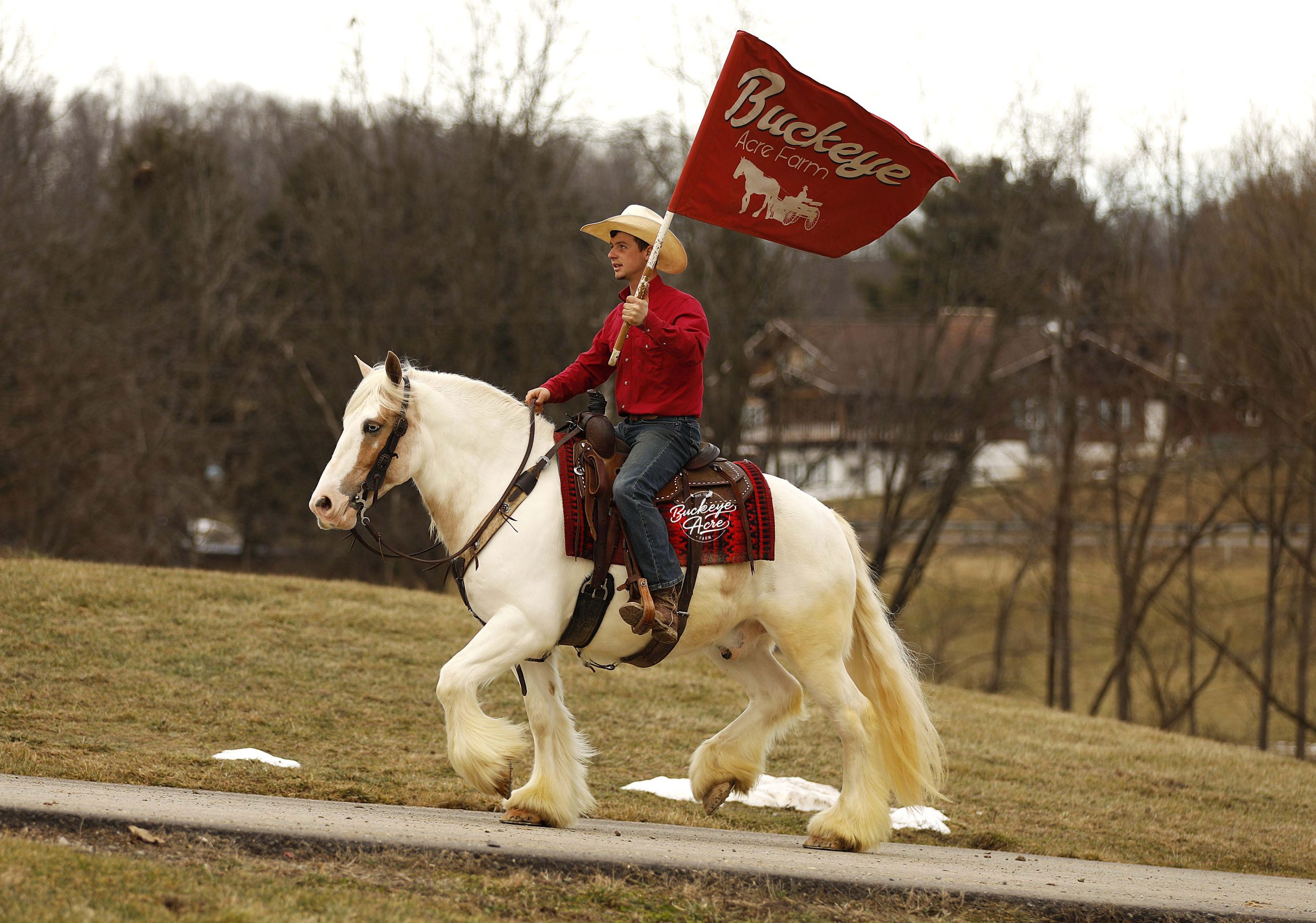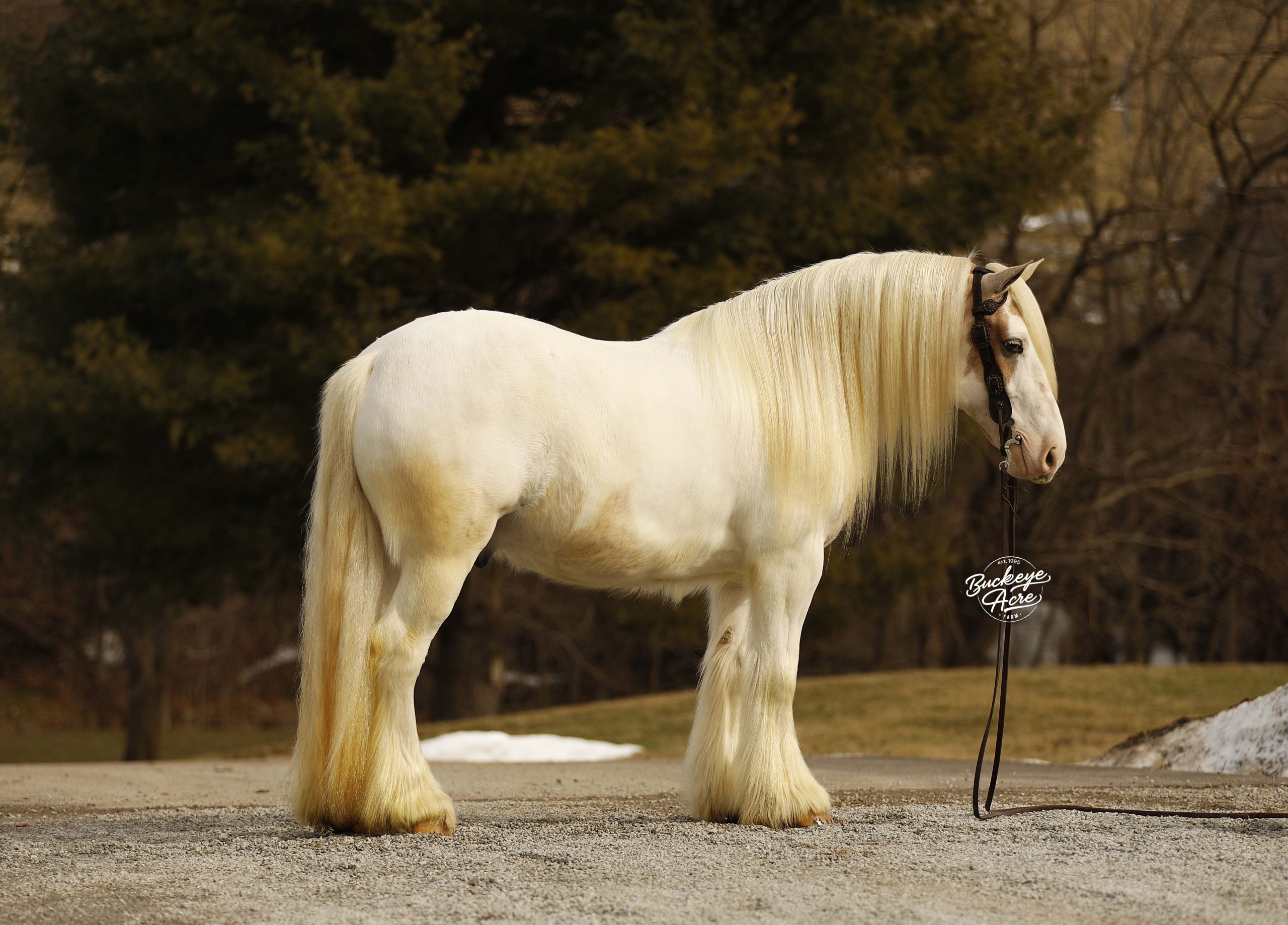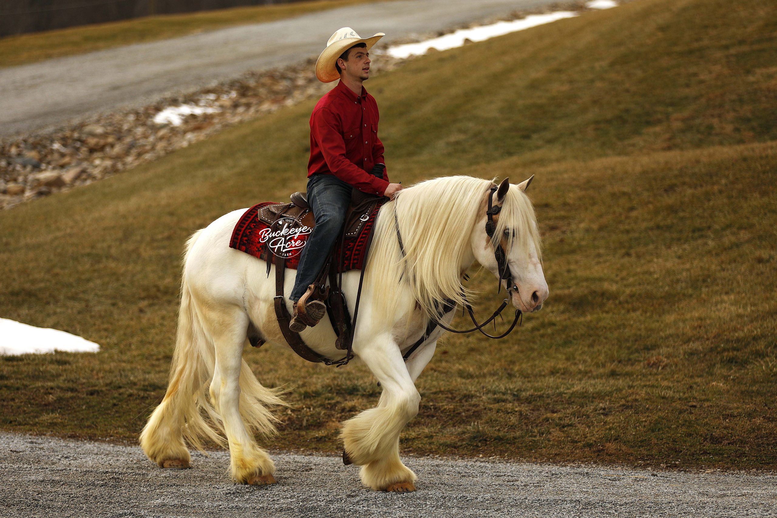 Bingo is a 2018 model standing 14.3 hands and registered with the Gypsy Horse Association. With his rich Palomino Tobiano color and one striking blue eye, he naturally grabs attention wherever he goes — but it is his ability and disposition that truly set him apart. In the arena, he rides Western, English, and bareback with the same steady, willing attitude. He knows his leads, side passes with ease, and carries smooth, comfortable gaits that make him enjoyable for long rides or relaxed schooling sessions. He stays soft, responsive, and aims to please every time you swing a leg over. Bingo also drives in the carriage and does so confidently, showing his versatility and solid foundation. He has been exposed to plenty and handles it all with a level head — traffic on state roads, whips, jugs, tarps, flags — he takes it all in stride. He has even trained to sit down, which never fails to impress and shows just how willing and broke he is. Outside the arena, he has logged many trail miles. He crosses water without hesitation, navigates different terrain with confidence, and is comfortable checking cows. He genuinely enjoys getting out and exploring new places, making him a fun and dependable partner for adventures. His temperament is one of his best qualities. He has a kind, steady mind and a true want-to-please attitude. In the barn, he is respectful and easy to handle. In the pasture, he gets along well with others or is perfectly content turned out alone. Bingo is up to date on his vaccinations, deworming, and shoeing, making him ready to step right into his next home. If you are looking for a flashy gelding with real-world experience, versatility, and a great personality to match his good looks, Bingo offers the complete package — a horse that is just as enjoyable to ride as he is to own. Please feel free to reach out to Duane @ 330-231-2324 for more information.