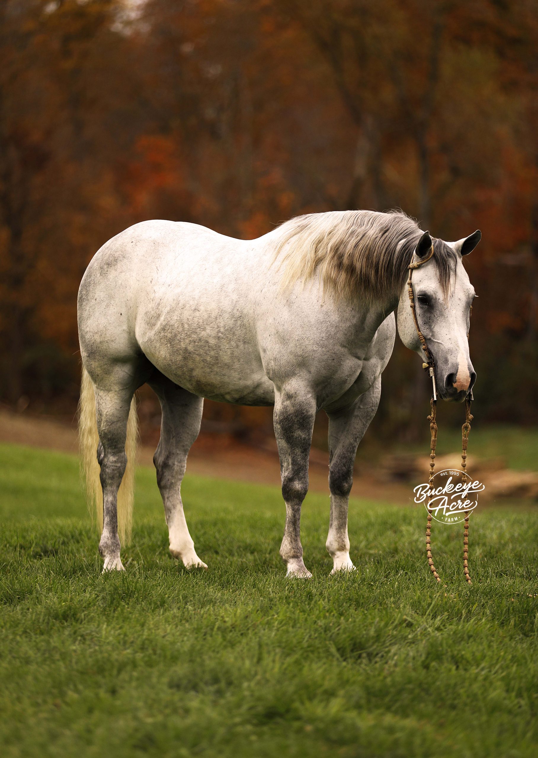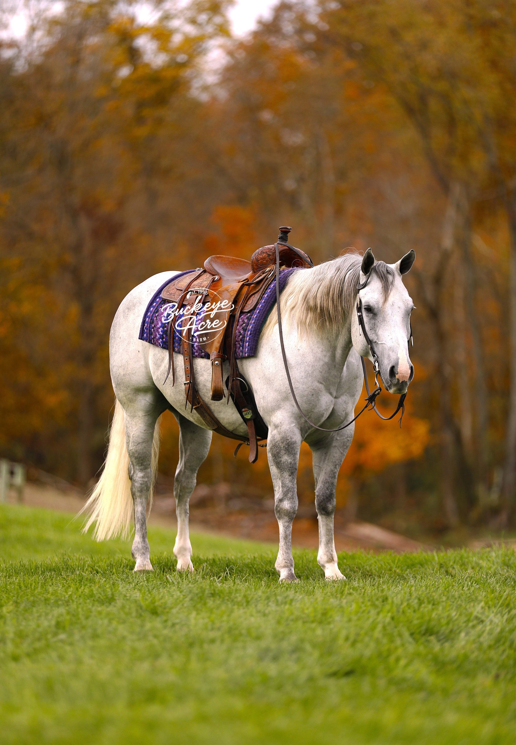 Wow oh wow, Infinity is one of those horses that truly stops you in your tracks. From his beautiful dappled grey coat to his couple of white socks and that cute little snip on his nose, he is the full package. Infinity is a 2021 model AQHA gelding standing a strong 14.3 hands tall, built with the kind of conformation that turns heads anywhere you take him. Whether you are looking for that wow-factor trail partner, something to step into the ranch classes, or simply a horse that makes you proud every time you swing a leg over, he checks all those boxes. Infinity has seen the miles and handles them like a seasoned veteran. He has been down countless trails through thick woods, up and down hills, across logs, through creeks, and out on state roads in traffic without batting an eye. He goes where you point him and never gets bothered about what is around the next corner. He has also been used to check cows and fence lines, making him handy and confident with real-life work. One thing we appreciate is that Infinity does not need to be ridden every day to stay the same. Leave him sit for a few days and he comes out willing, level-headed, and ready to go. He has been ridden Western, English, and bareback, and takes everything in stride. His movement is extremely smooth and comfortable, from the walk to the trot, extended trot, and lope. He has been ridden in the indoor and outdoor arenas, knows his leads, and side-passes right up to the mounting block to make getting on easy. He has seen jugs, tarps, whips, and all kinds of obstacles and handles them all calmly. Infinity is up to date on shoeing, vaccinations, and deworming, making him ready to go for any new home without worry. This is the type of gelding you can enjoy on the trails one day, take to a ranch show the next, or let the kids ride around and have fun. He is safe and suitable for riders of any level, from beginners to seniors to experienced riders wanting something steady and classy. Infinity loves attention and is the kind that greets you at the gate, hoping for scratches and company. He is good for the farrier, stands well in the wash bay, and is simply an enjoyable horse to be around in every way. If this sounds like the horse you have been looking for, feel free to reach out to Duane at 330-231-2324 for more information or to schedule a day to stop by and see him in person.