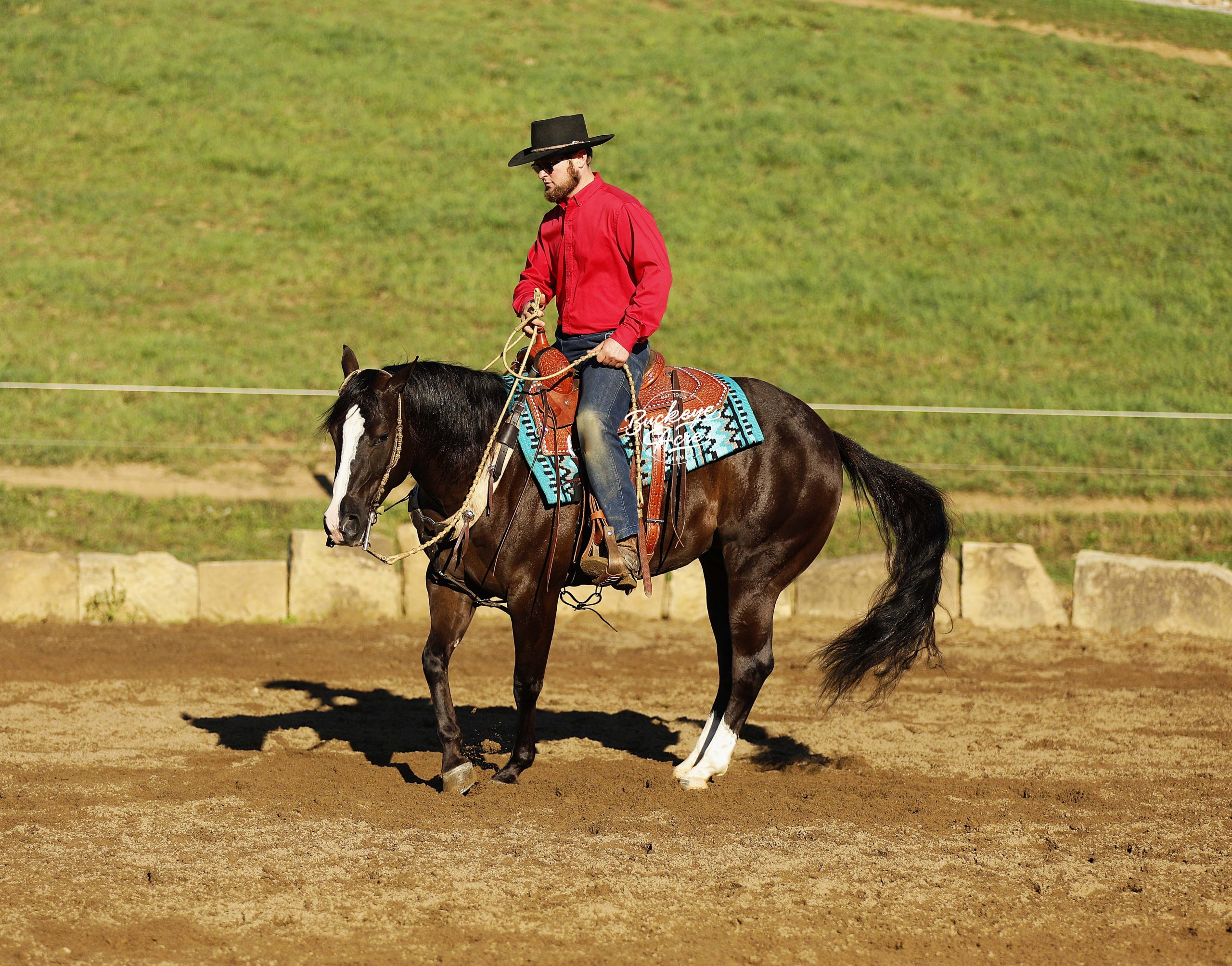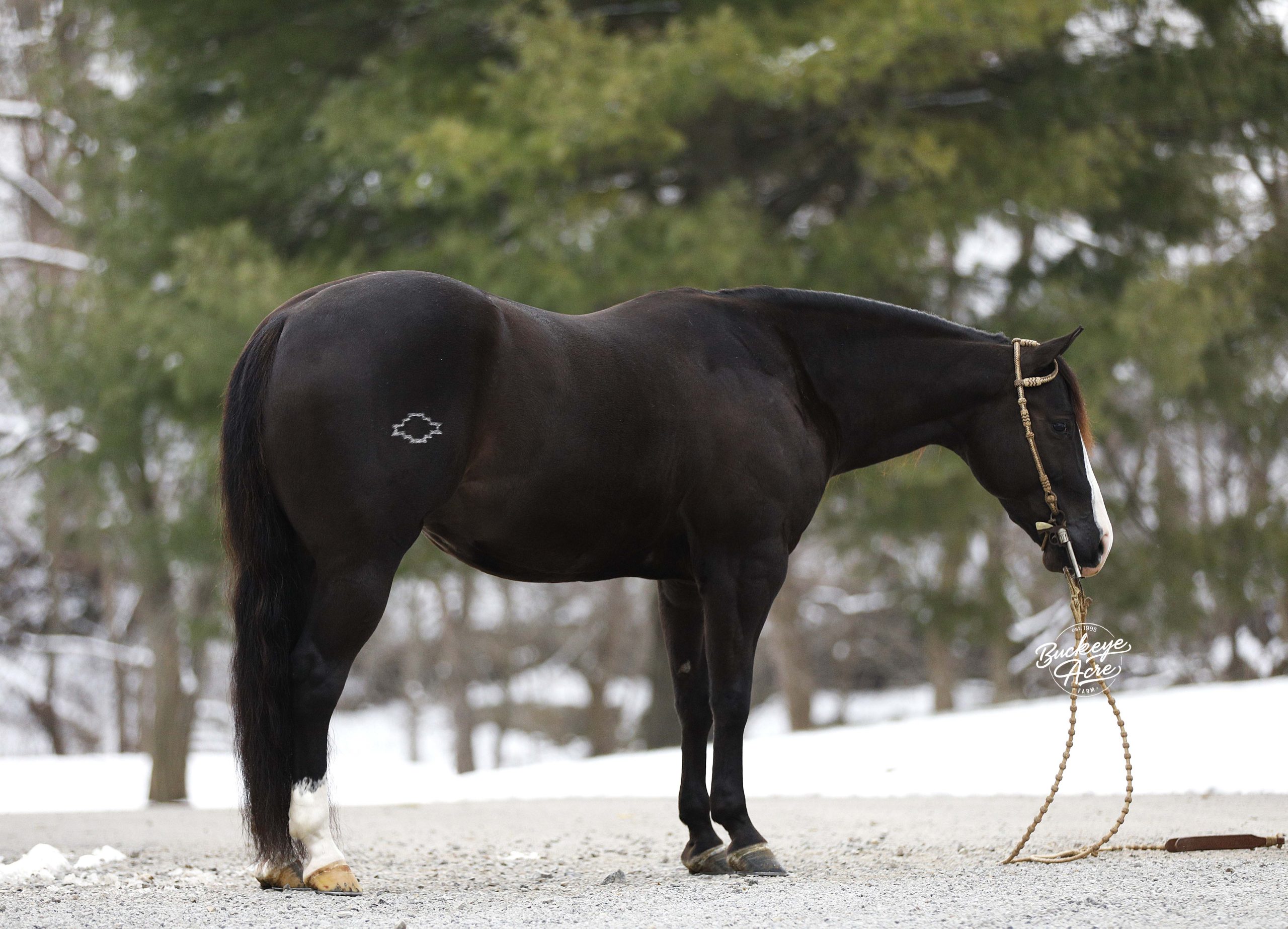 Prepare to meet a horse that truly has it all—Markett, a 2020 AQHA gelding standing a strong 14.2 hands, jet black with two white hind socks and a bold white blaze down his face. Correctly built, impeccably trained, and loaded with personality, he’s the kind of horse that instantly makes you smile just by being near him. Markett isn’t just a horse—you could call him a partner, a friend, and a superstar all in one. He’s been everywhere: from the ranch to the trails, from the show ring to Ranch Hand competition trails, and he handles it all like a pro. In fact, he was Top Horse in a Ranch Hand Competition out of 40 horses! Miles of trails, creeks, logs, fence lines—Markett takes it all in stride. Need a reliable horse to check cows, turn out horses, or just enjoy a peaceful ride? He’s your guy. This horse isn’t just about work—he’s about style, finesse, and smooth movement. Markett has very good, smooth gaits from walk, trot, extended trot, to canter. He knows his leads, executes smooth lead changes, neck reins, side passes, spins, and even a gorgeous sliding stop. Tarps, jugs, whips, arenas (indoor or outdoor)—he doesn’t flinch. He’s been ridden western, English, bareback, and even brideless. He’s truly a Buckeye Graduate through and through. Markett’s heart is as big as his talent. Beginner? Senior? Advanced? Doesn’t matter—he’ll meet you right where you are. Show him today, hit the trails tomorrow, and let the grandkids enjoy him next—he’ll slow his pace, lower his head, and care for them like a trusted babysitter. He’s the first to greet you at the barn gate and will patiently stand at your side until you’re ready. He’s Henry’s go-to horse for jobs big and small—and he’s always ready to impress. Up-to-date on vaccinations, deworming, and shoeing, Markett is ready to bring joy to his next family. Whether you ride once a week or just want a pasture companion that brightens your day, he’s the horse who makes everything better. Markett is more than a horse—he’s a story waiting to be shared, a partner for life, and a heart-stealer for anyone who meets him. Call Duane @ 330-231-2324 to see him in person and experience the magic firsthand.