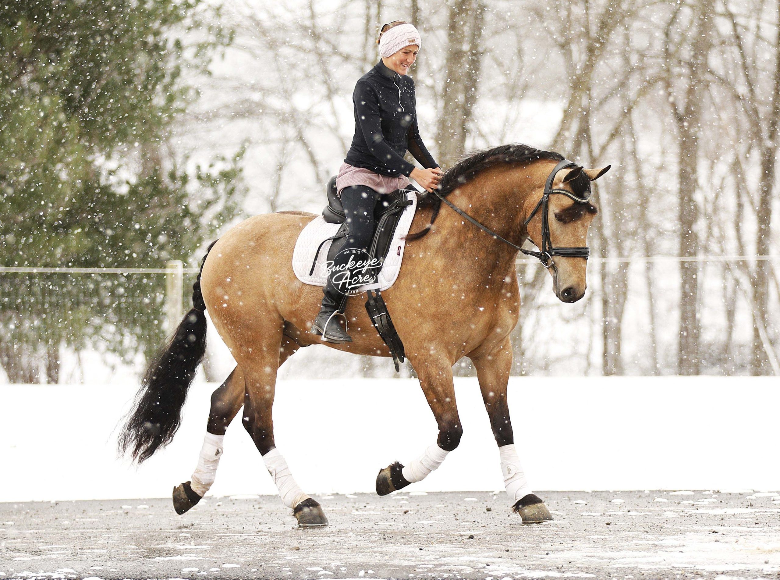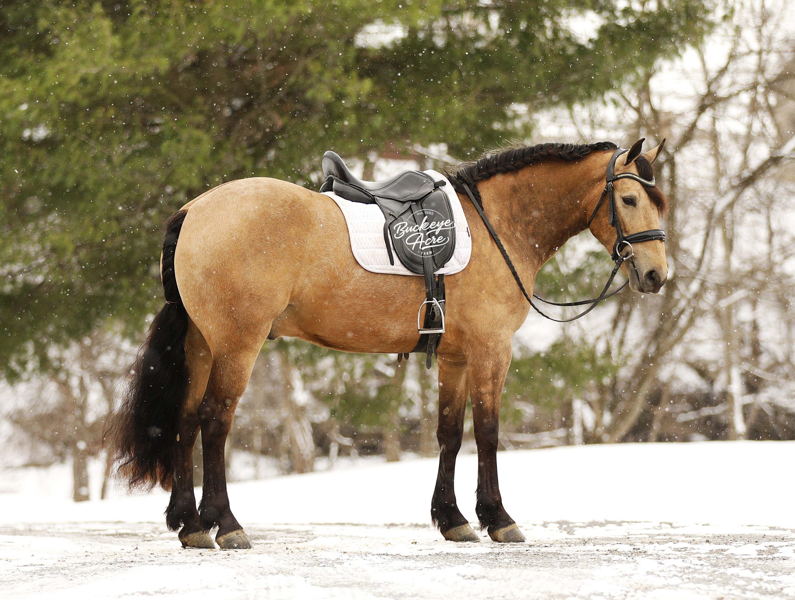 Whew, wow—where do we even begin with Martini? This extraordinary buckskin Draft/Quarter Horse cross is truly a one-of-a-kind package, combining stunning color, perfect confirmation, a gentle personality, and a presence that will win your heart. Born in 2020, Martini stands a strong 15.1 hands, highlighting a beautiful, dappled buckskin coat, a long, flowing mane and tail, four striking black socks, and a small white star centered perfectly on his forehead. Wherever he goes, he turns heads—whether it is in the pasture or out on the trail. Martini is not just a pretty face—he is a true gentleman with a heart as big as his presence. His personality is kind, patient, and eager to please, making him a joy to be around in the barn, pasture, or arena. He has an exceptionally good “must feel” and smooth, enjoyable gaits that you can sit in all day without even noticing you are riding—making every ride an effortless and relaxing experience. Versatility is one of Martini’s strongest qualities. He has been ridden Western, English, and bareback, and can side-pass with ease. He takes jugs, whips, and tarps in stride without hesitation and adapts to any situation with confidence and calmness. From state roads with traffic to checking cows on the ranch, and from exploring miles of trails through woods, over logs, and across streams, Martini never misses a beat. He is as comfortable in the indoor arena as he is in the great outdoors, always maintaining his composure and willingness to work. Martini is also incredibly safe for riders of all levels—whether you are a beginner, a senior, or an advanced rider, he will take care of you and make every ride enjoyable. He shines as a reliable and easygoing partner off the saddle as well. He is a gentleman in the barn and pasture, always the first to greet you at the gate, and he is excellent with farrier visits, wash bay routines, and general handling. He does not require daily rides to stay consistent in manners, attitude, or performance, making him an ideal mount for busy owners or those looking for a horse with no maintenance needs. On top of his personality and experience, Martini has all the practicalities covered: he is up to date on vaccinations, deworming, and shoeing, and has proven to be sound, healthy, and dependable. His combination of beauty, brains, heart, and versatility makes him equally suited for trail riding, ranch work, casual pleasure riding, or showing in a variety of disciplines. If you have been searching for a horse that combines stunning looks, smooth gaits, kind temperament, and a lifetime of experience, Martini might just be the one. He is more than a horse, he’s a partner, a friend, and a trusted companion ready to create memories for years to come. Reach out to Duane at 330-231-2324 to learn more or schedule a visit to meet this amazing horse in person.