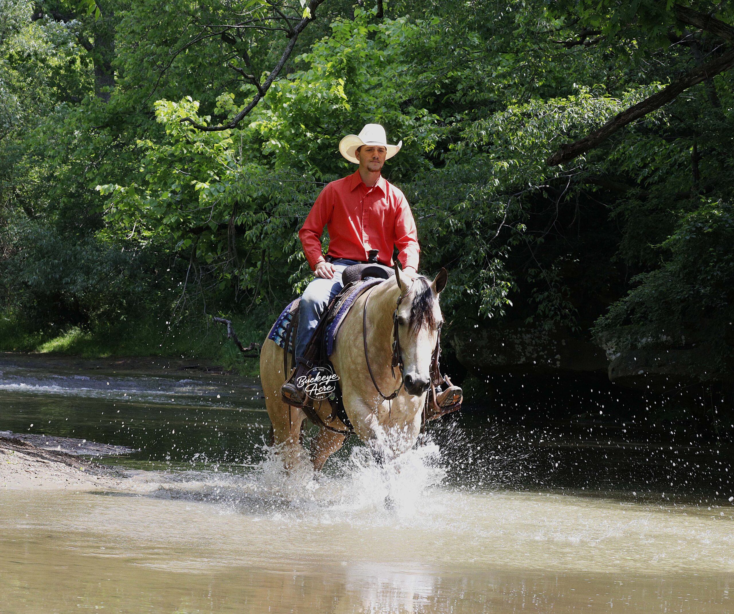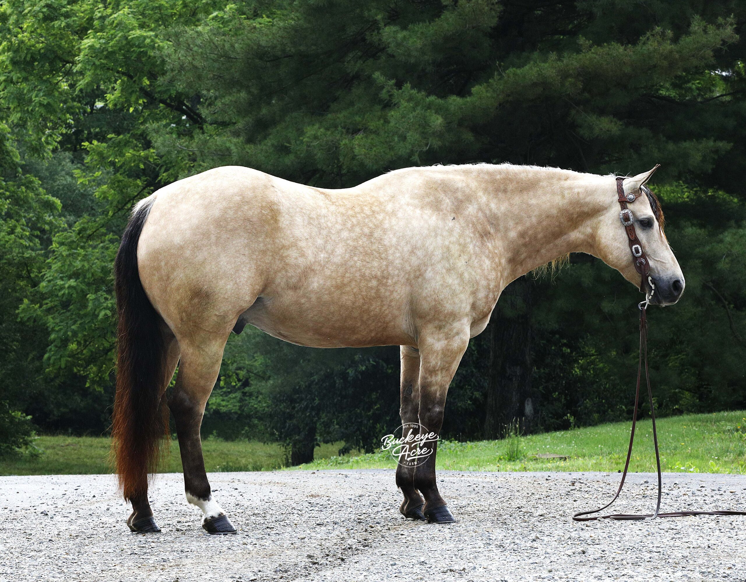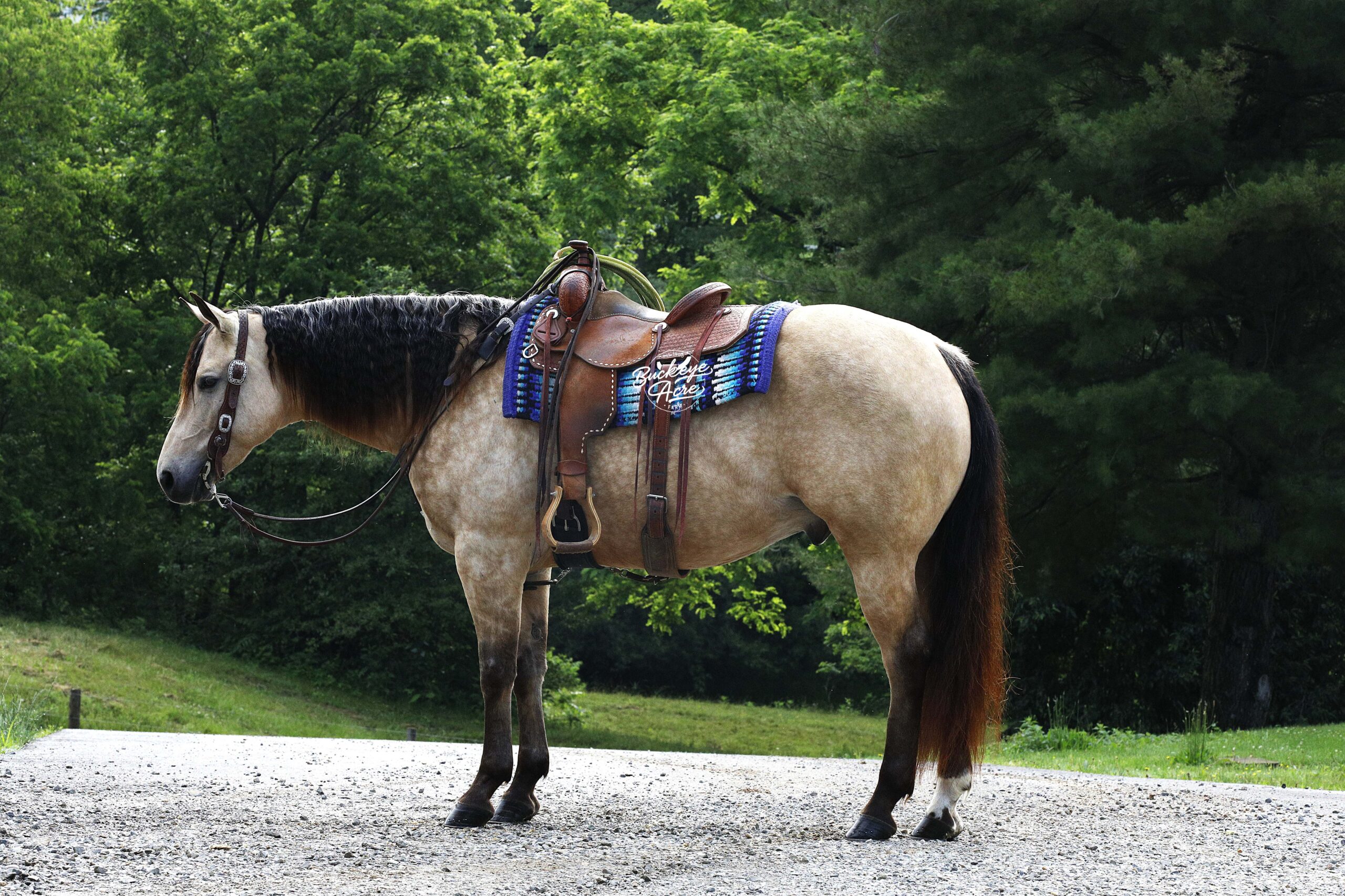 If you are looking for a horse that combines beauty, brains, and a bombproof attitude, let us introduce you to Cade. This 6-year-old AQHA gelding stands a solid 15.3 hands and is dressed in a striking dappled buttermilk buckskin coat that turns heads wherever he goes. With his strong bone and solid build, Cade is not just a pretty face—he is built to last and ready to go to work or hit the trails in style. Cade is safe and dependable for riders of all levels—from beginners just starting out to seniors looking for a trustworthy companion. He does not need daily riding to stay steady; whether you ride him once a week or once a month, he stays the same kind, willing partner every time you saddle up. He is seasoned on the trails, confidently crossing water, stepping over logs, and handling new terrain with a calm and collected demeanor. He has been used to check cows, drag calves at roping’s, and patrol fence lines—always with a quiet, can-do attitude. Cade also steps up onto a pedestal with ease, is desensitized to whips, tarps, and jugs, and settles in quickly at new places, even on overnight trips. With a smooth walk, trot, and canter—and a ground-covering walk that is perfect for long rides—Cade is as enjoyable to ride as he is to be around. He has been on busy state roads and in traffic without batting an eye. More than anything, Cade has a heart of gold and a genuine desire to please. Whether you are grooming him in the barn or riding him out on the trail, he is always looking to connect. Cade is up to date on all his vaccinations, deworming, and dental care. He wears shoes on all four feet due to the terrain where we ride and is ready for his next adventure. If you are looking for a lifelong partner with both beauty and brains, Cade might just be your perfect match. Please call Duane @ 330-231-2324 for more information.