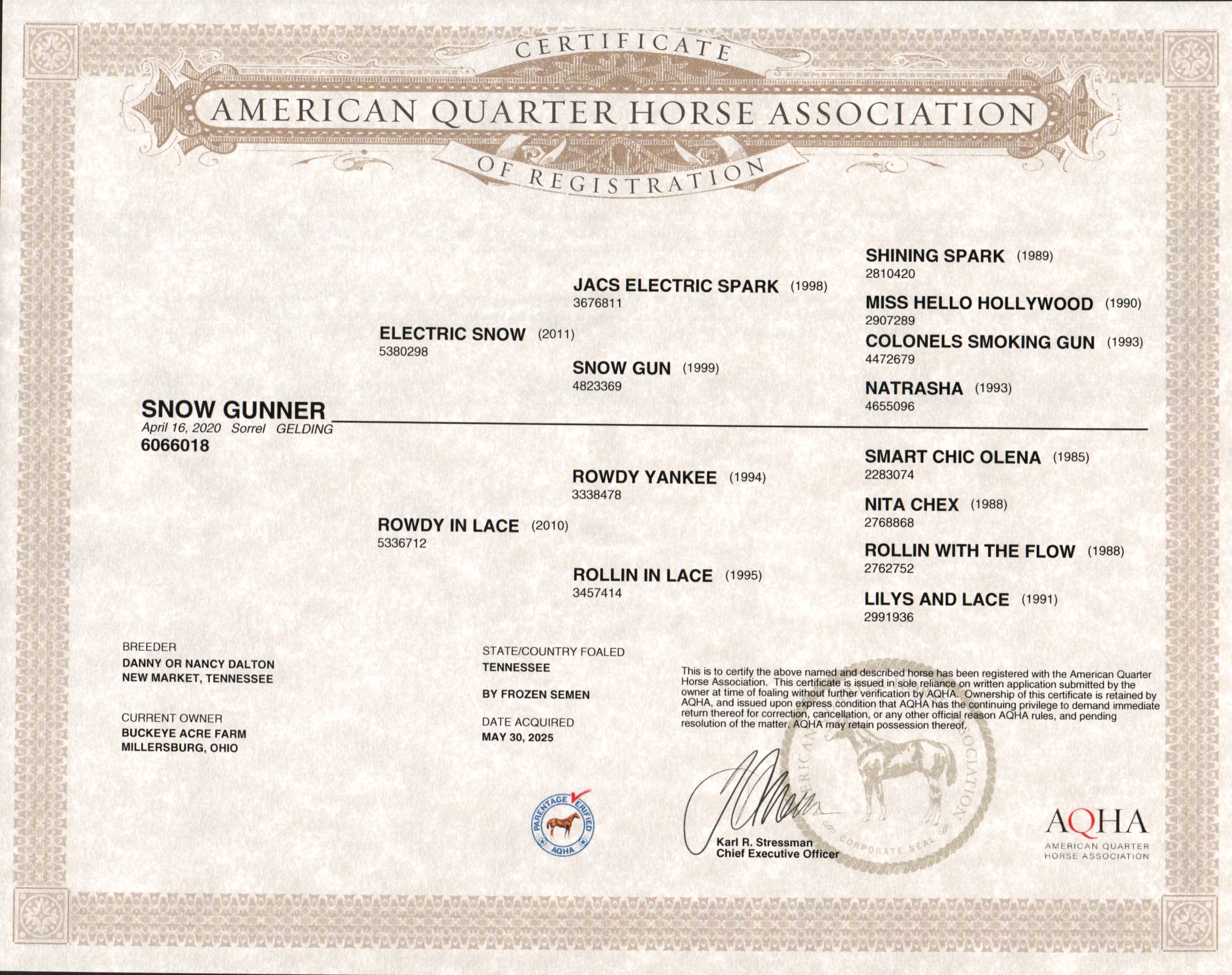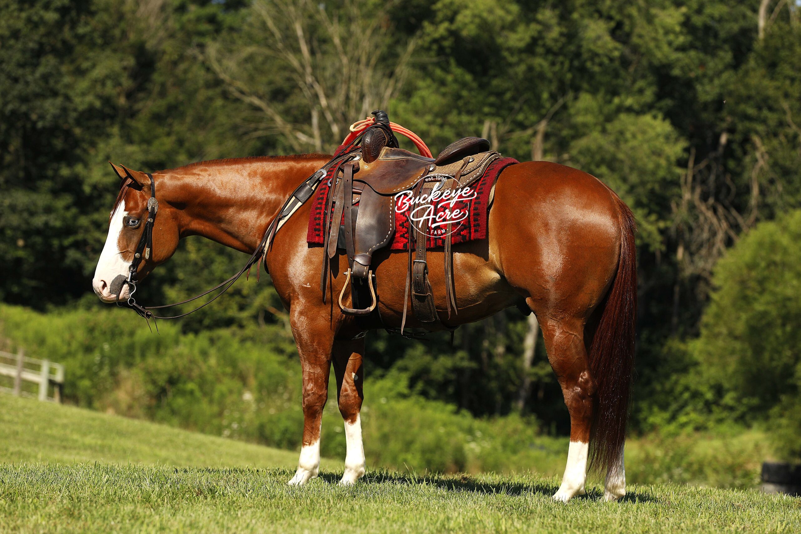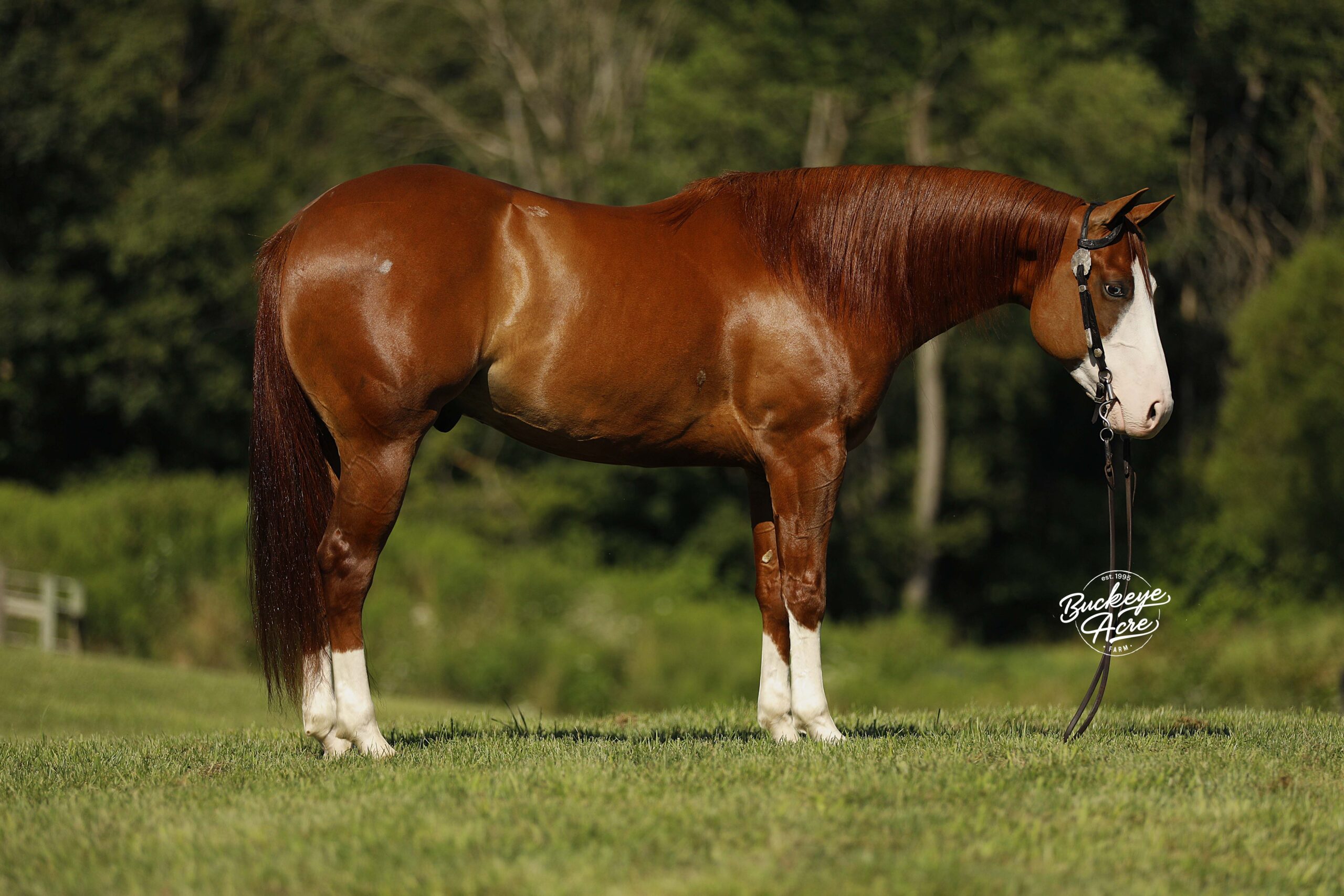 Are you looking for that all-in-one versatile family horse? We think Sunrise could be the one. This 2020 sorrel gelding stands at a near-perfect 15 hands, dressed in four white socks and a bald face that makes him absolutely unforgettable. His sharp conformation and athletic build are paired with a kind, gentle eye and a presence that always turns heads. From his looks to his breeding to his personality, Sunrise truly has it all. Sunrise is every bit as enjoyable to be around as he is to ride. He is a gentleman in every sense of the word, whether in the barn or out in the pasture, always meeting you at the gate with a bright expression and eager for scratches and attention. He is steady, patient, and safe, making him a horse that can be enjoyed by riders of all levels. From kids just starting out, to seniors wanting a dependable trail partner, to advanced riders looking for a horse with ability and buttons, Sunrise adjusts to his rider and gives his all. This gelding has been ridden safely on state roads in traffic, has spent countless hours on the trails, and takes on any terrain you point him toward. He will cross water, step over logs, and handle steep hills going up or down with confidence. His smooth, easy gaits—from walk to extended trot to lope—are comfortable enough to enjoy all day long. He knows his leads, carries a soft one-hand neck rein, performs lead changes, and has been used to check cows and fence lines. He is well desensitized to tarps, jugs, whips, and even gunshots, making him steady and dependable in nearly any situation. Best of all, Sunrise does not need to be kept in a steady program to remain your trusted partner. Adding to all this is his outstanding pedigree. Sunrise is an own son of Electric Snow, whose offspring have earned over $480,000, and his lineage goes back to the Hall of Fame sire Shining Spark. On the dam’s side, he traces to the legendary Smart Chic Olena, another Hall of Fame horse. With this foundation, Sunrise has the ability and talent to take into the show pen, yet he is quiet and dependable enough to be enjoyed by kids and grandkids on a weekend trail ride. That kind of versatility is hard to find. Our own children have ridden him all over the farm, and Sunrise enjoyed every minute with them. He is good in the wash bay, stands quietly for the farrier, and is up to date on dental care, vaccinations, and deworming. From his looks, his pedigree, his training, and his willing-to-please personality, Sunrise is a horse that can fit a wide variety of needs. You could show him one day, hit the trails the next, and trust him with the kids the day after that. If you have been searching for a horse that truly checks every box, Sunrise could fit the bill. For more information or to schedule a day to meet him in person, contact Duane at 330-231-2324.